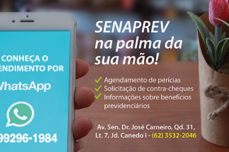 Para facilitar o atendimento a servidores e pensionistas da Prefeitura de Senador Canedo, o Senaprev, realizará alguns serviços também pelo aplicativo WhatsApp. Caso precise agendar perícias, solicitar contracheques, ou pedir informações sobre os benefícios previdenciários, entre em contato com o pelo número (62) 99296-1984, em horário comercial.